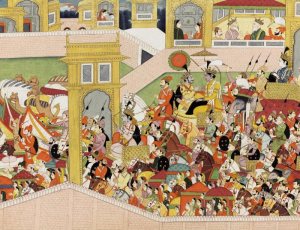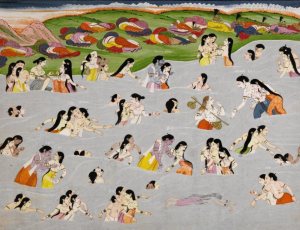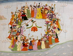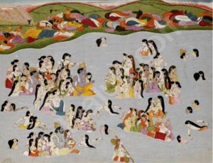 Die Yadavas vergnügen sich im Ozean