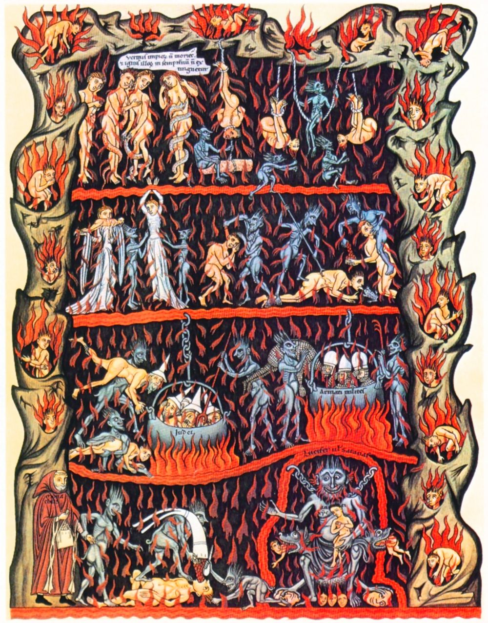 Herrad von Landsberg um 1180, Höllenwelt aus Hortus Deliciarum