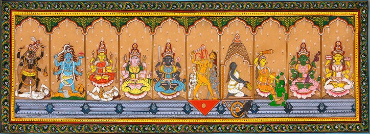 Mahavidyas: „Maha“ bedeutet „Groß“ und „Vidya“ bedeutet „Wissen“. Also die zehn großen Wissen, und weil es weibliche Wesen sind, geht es vermutlich um die Natur. Eine gute Übersetzung ist schwer zu finden, man könnte vielleicht von den wesentlichen Grundzügen oder Gesichtern der Natur sprechen, oder sogar von yogischer Naturwissenschaft. Im Vordergrund steht ihre Meditation und Verehrung in symbolhaften Bildern, die man mittlerweile weitverbreitet in Indien findet und die vor allem im Tantra eine wichtige Rolle spielen. Über ihre Entstehung gibt es unterschiedliche Geschichten, die verschiedene Aspekte zum Ausdruck bringen.